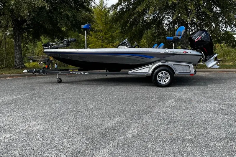 In the 18-foot class, the Ranger® Z518 stands alone in terms of all-out performance, fishability, and features. With the standard 150-horsepower Mercury®, you'll enjoy invigorating performance and economy, but opting for the 200-horse V8 FourStroke opens the door to a new level of all-out adrenaline-pumping exhilaration. We've maximized storage space up front with a pair of 8-foot rod boxes, a gelcoat-lined, insulated in-deck cooler and spacious starboard gear box. The oversize casting deck and 97-inch beam deliver a stout, stable platform. A foam-filled core and strategically placed pultruded fiberglass material deliver unshakable solidity and a one-piece feel throughout. The console carries a full complement of precision gauges, the electronics of your choice up to 12" and stylish matte black accents. Integrated LED navigation lights, a recessed trolling motor pedal and SRS Soft-Ride™ seating round out this angler-centric rig that far outperforms its price tag. From daylight to dusk, the Ranger Z518 delivers features and value like none other.
