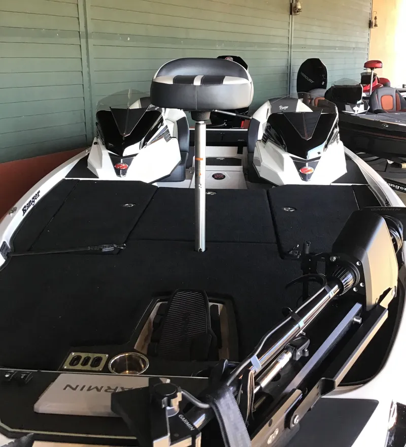 The Z519R is the latest in Ranger's premium R Series lineup, and it comes fully loaded with premium add-ons that give you pro-level capability, packaged for a price savings. Brimming with top-tier features, the Z519R has the fishability and all-around performance you've come to expert from Ranger with added touches to set you off on the water and at the ramp. Our proprietary Echelon™ rod storage system keeps loads of sticks secure and handy, while reducing hassle when fetching one. A padded front deck is adorned with push-to-close latches that eliminate tripping hazards associated with twist-to-close latches, and color-matched cockpit liner and compartments liners add classy functionality. Analog switching makes for easy adjustments on the fly, and an insulated 40-quart center step cooler holds more than a day's worth of drinks. The Ranger touchscreen multifunction display puts engine parameters at your fingertips, while smooth, responsive steering gives effortless control of 225 horses in the Mercury® FourStroke V8. A refined running surface delivers on-rails handling at speed as well as unbeatable edge-to-edge stability on the trolling motor. A vast front deck gives ample space for two, and a world of storage underfoot. The Z519R is the latest in a long line of premium bassin' rigs that stem from our unwavering Passion for Perfection™.