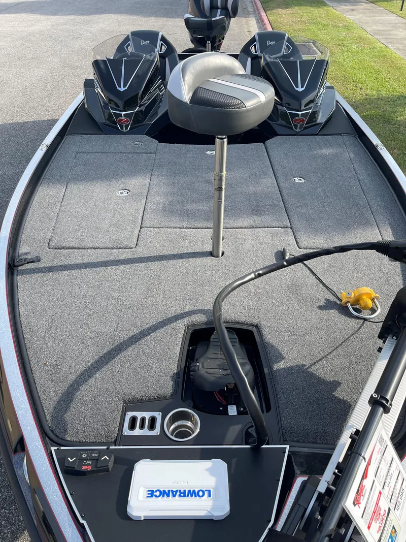 An all-new console carries dual graphs or a single 16" unit and the touchscreen Ranger RIDE system that gives you control over every boat and engine function. The all-new seats rest on slides and CloudNine™ air ride shock system that takes the teeth out of chop. A key fob and new push-button ignition let you start up quicker and deliver greater security when you're on the road. Inside the coin box is a wireless phone charger, and in the battery box are standard lithium batteries.