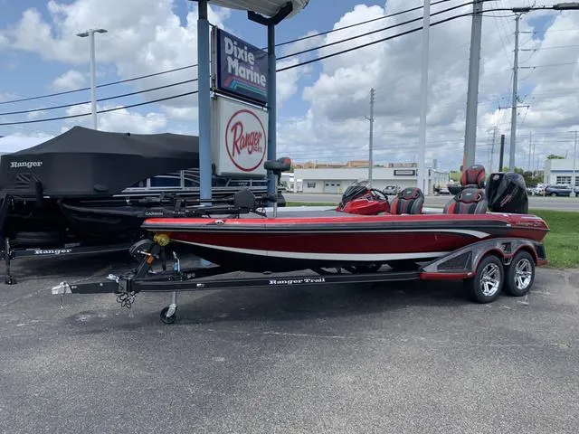 2025 Ranger Boats Z521R Cup, Big, bold, and BEAUTIFUL! Garmin package. Mercury 250 ProXS 4-stroke, Garmin Force trolling motor, Garmin 126SV at console, Garmin 126SV at bow with Live Scope, boat cover, Hamby keel protector, oxygenator livewells, tilt hydraulic steering, hydraulic jack plate, dual trim levers, lithium trolling motor batteries, hot foot. 17" wheels/tires on tandem trailer. The biggest,baddest bass boat in the Ranger lineup...