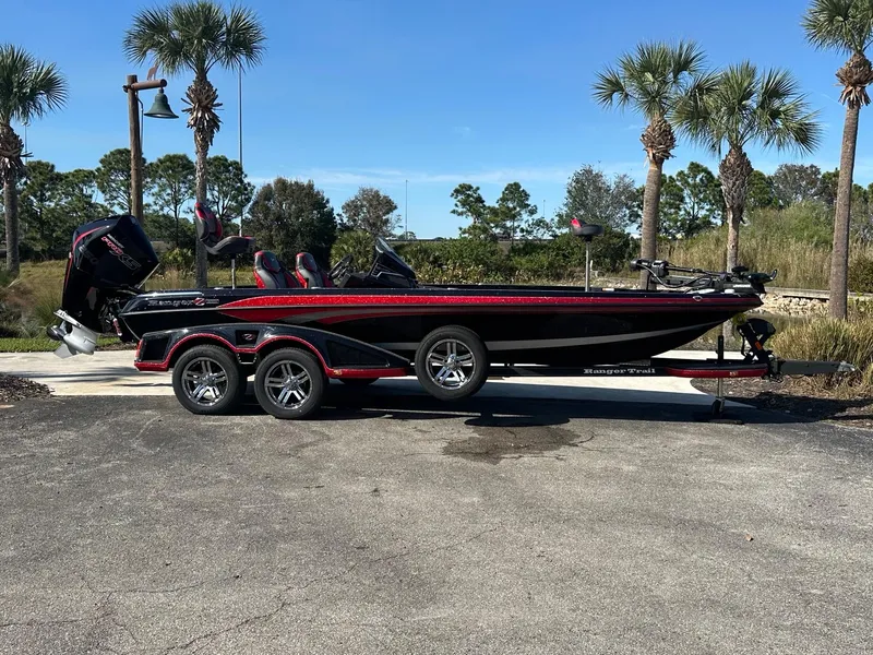 The tallest order in the boating world is creating the next flagship Ranger bass boat. Doing so requires an extensive knowledge of-and appreciation for-the past, while putting forth complete dedication to delivering a paradigm shift in all-around performance, fishability, quality, safety, and style. The all-new Z521R represents countless hours of R&D, testing, and continuously raising the bar, and the boat you see here is not only unquestionably worthy of the Ranger name, but instantly evolves and elevates what a bass boat can be. The Ranger Cup Equipped package adds pro-selected options that let you hit the most daunting tournament trails with even more advantages. From bow to stern, hull to top cap, the Z521R has been tweaked, massaged, enhanced, and perfected across every inch with a passion for perfection. No element of the boat's design, performance, quality, safety, or fishability was untouched as we crafted this next-generation legend. The culmination of this work has yielded an all-new boat with revamped and elevated all-around performance that melds with aggressive modern styling that sets this rig apart as the apex of bass boats. Real-world improvements include a perfected hull that delivers rapid lift onto plane and a stronger top end. We've also elevated the technology that comes standard on the Z521R. The Ranger RIDE system lets you monitor and control every critical function while a key fob permits quicker start up and enhanced security when you're not nearby. The Z521R also features an industry-first push-to-start system that gets you to the next spot fast. The steering wheel and driver's seat are heated with an adjustable lumbar support to match the Cloud Nine™ air-ride seating that is present in both seats. Long, cold, bumpy blasts across the lake just got a lot more doable. Deep within the Z521R is a reimagined core and stringer system that not only bolsters our One-Piece Feel Interloc™ construction but permits larger storage boxes for even more space. The rod boxes feature an all-new tiered shelf system for unmatched customization, flexibility, and capacity and the ability to hole sticks up to 9'. Every box features an automatic light sensor that cuts on LEDs when a lid if lifted. A larger day box and cooler feature the same construction as today's premium coolers for daylong ice. We invite you to peruse the photo galleries below to further familiarize yourself with the Z521R then contact your local Ranger dealer to see this newest legend for yourself. The Z521R carries more advancements in performance, technology, fishability, and style that not only set it apart from the crowd but leads it.