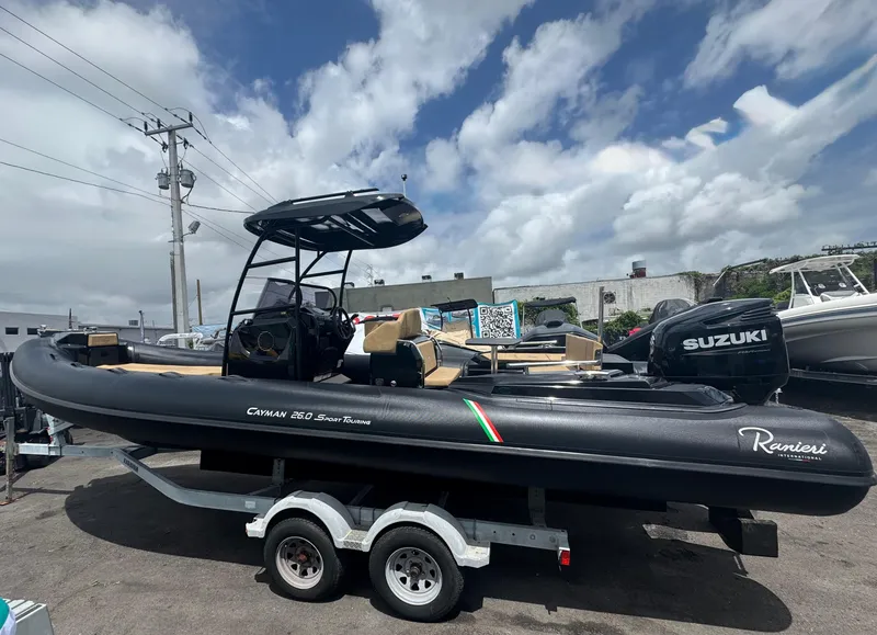 The Ranieri Cayman 26.0 Sport Touring is a luxurious and high-performing boat that offers a perfect blend of style and functionality. With its sleek design and spacious deck, this boat is sure to turn heads on the water and provide the ultimate boating experience. The comfortable seating and ample space make it ideal for day cruising and entertaining guests.