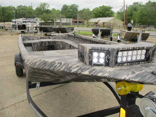 OPTIONS INCLUDED BILGE KIT, GUN BOX,GUN TRAY,LED INTERIOR STRIP LIGHTS, LED LIGHT BAR, LED REAR FACING TRANSOM LIGHTS, NON SKID LINER, SEAT BASES,PRE-WIRE TROLL MOTOR,GRAB HANDELS