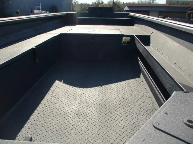 MID DECK, GRAB RAILS GUN BOX, DOUBLE TRAY, LED LIGHT BAR ON BOW AND LED TRANSOM LIGHTS, BOW AND STERN NAV. LIGHTS, BILGE PUMP, SEAT BASES, PREWIRE TROLL MOTOR PLUG," HYDRO TURF"