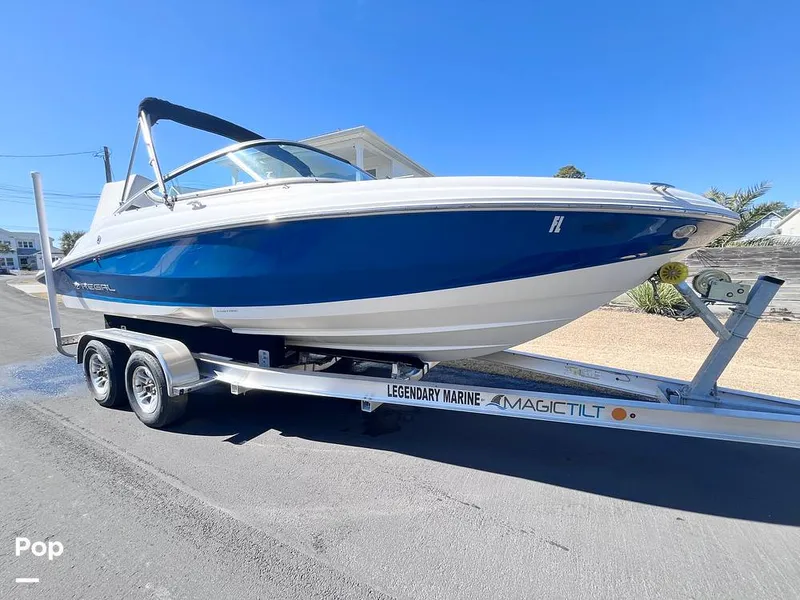 This Regal 21 OBX is super clean and lightly used with just 165 hours on the engine. The boat is stored out of the water on the 2023 trailer when not in use and is covered. The gelcoat was intact. The gelcoat was buffed and waxed in 2026. The seating was intact and clean. The boat and engine are professionally maintained. Engine fluids and the impeller were changed in July 2025. The 2023 trailer has original tires with low miles. The boat ramp is just down the street from the boat's storage location!