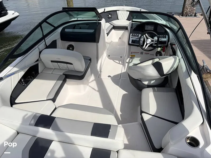 This versatile 21‑foot outboard model offers smooth, confident handling and impressive fuel efficiency, making every cruise effortless, whether you're exploring local waterways or spending the day towing riders. The Garmin touchscreen puts navigation and system controls right at your fingertips, adding safety and convenience to every outing. Its power tower enhances the boat's sleek profile while providing easy storage and added functionality for watersports.