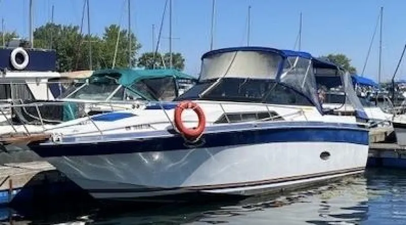 Boat is in nice condition for her age. Well maintained, it surveyed “above average” in 2021. About 900 hours twin 260 hp Mercruisers. Sleeps 4 in comfort, 2 in vberth, and 2 in mid cabin. Head with shower, galley with sink, fridge and microwave. This is a great quality built family cruiser to enjoy