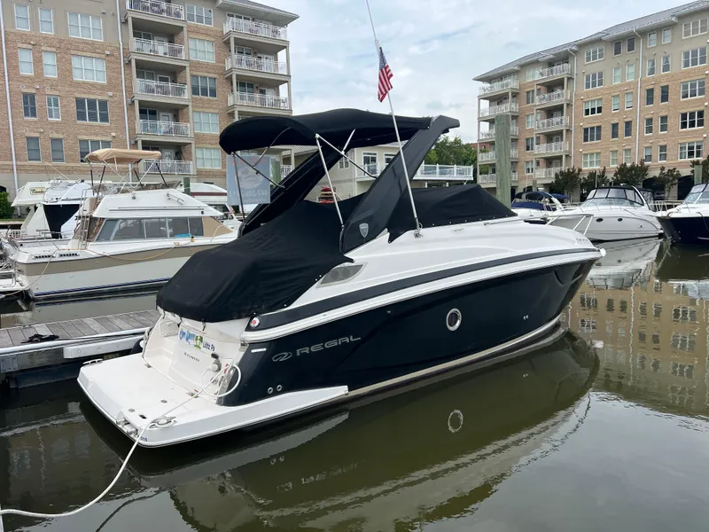 Sleek Design: The Regal 28 Express features a modern and sporty exterior with clean lines and a well-appointed cockpit, giving it an attractive presence on the water. 2. Spacious Interior: Despite its size, the cabin is thoughtfully designed with ample headroom, comfortable seating, and a well-equipped galley, making it suitable for overnight stays. 3. Performance: Powered by reliable engines, the boat delivers smooth handling and good speed, ideal for cruising and water sports. 4. Comfort & Amenities: The boat includes conveniences such as a full enclosure, a decent-sized swim platform, and quality materials throughout, enhancing comfort during outings. 5. Versatility: Its express cruiser layout makes it versatile for day trips, weekend getaways, or entertaining guests.