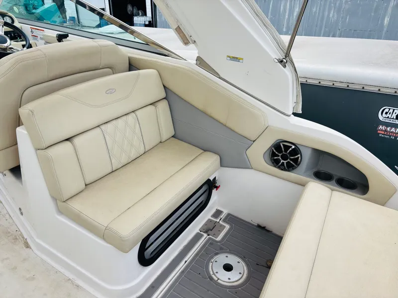 Powered by a dependable Volvo Penta V8 with stern drive, this 28 Express delivers smooth acceleration, responsive handling, and an enjoyable ride whether you're cruising inland waters or heading offshore. The thoughtfully designed cockpit offers ample seating for entertaining, complemented by a well-integrated helm with modern controls and navigation capabilities, including Garmin GPS.