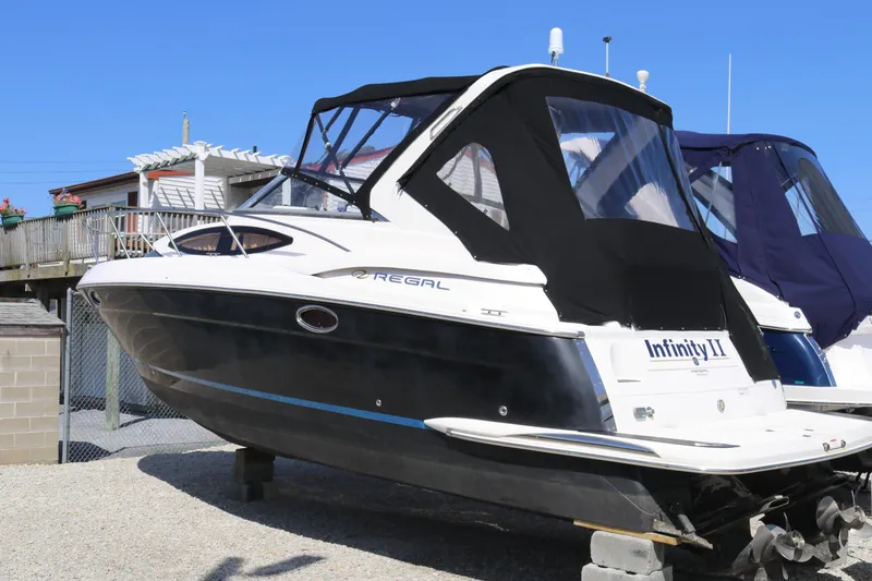2009 Regal 3060 Express Cruiser. Twin Volvo 5.0 GXi with 351 hours. Black hull color, Sport Arch, full enclosure, Bimini top, Raymarine GPS/VHF, Vacuflush head, Kenwood stereo, new batteries