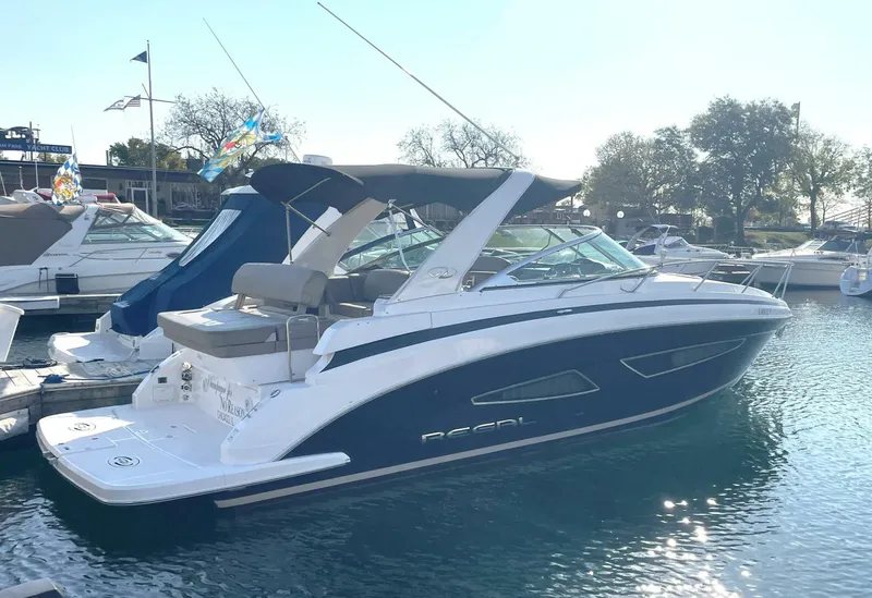 This is a gorgeous FRESH WATER boat loaded with amenities. She has the 300HP Volvo 5.0L engines with only 290 hours and a BOW THRUSTER. The cockpit makes a real statement with the large wet bar. An Aft Bench Seat can face forward when underway or flip facing backwards at dock or at anchor. It also converts into a sunpad. The convertible portside seat keeps the captain company while underway and provides a sociable wrap around aft dining area.