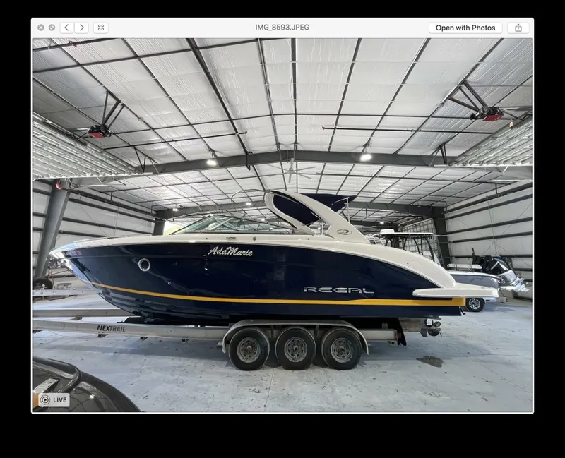 The Regal 3200 offers the perfect platform for entertaining family and friends. This boat's spacious cockpit and bow seating area, a wet bar, and reversible seating offers the perfect platform for entertaining guests cruising on the water or relaxing at the sand bar for the day!