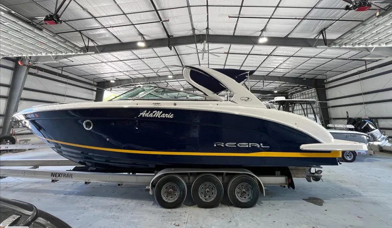 The Regal 3200 offers the perfect platform for entertaining family and friends. This boat's spacious cockpit and bow seating area, a wet bar, and reversible seating offers the perfect platform for entertaining guests cruising on the water or relaxing at the sand bar for the day!