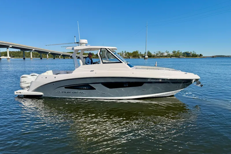 The Regal 33 SAV includes air-conditioned overnight accommodations for up to four guests - featuring a forward convertible queen, a large mid-cabin berth, and a generous full head with enclosed shower. The fuel capacity of 225 gallons gives a SAV range suitable for weekend escapes. The generator ensures onboard power for appliances, comfort, and electronics even when away from shore power. The Regal 33 SAV offers a blend of luxury, utility, and capability.