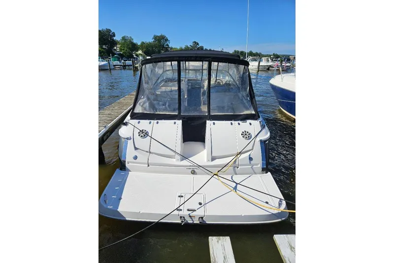 This is the big one for those who favor pursuing their pleasures in the lap of luxury at 55 mph. Think of it as combining deep-V high performance with a penthouse (ocean view, of course). The penthouse part includes a cherry wood dining table that converts to a double bed, a fully enclosed head, hanging locker, large skylight with hatch and ample storage for long weekend escapes. For maximum entertaining flexibility, cockpits can be configured to suit individual needs. Forty square feet of convertible sun lounge area and the weatherproof six-speaker, 100-watt marine stereo system is all part of a huge list of features and equipment that you'll find standard only on the Regal 3350.