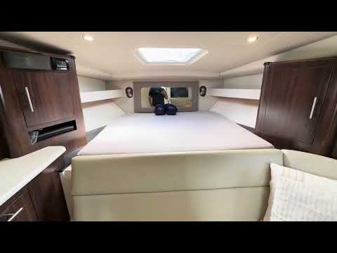 • Comfort: The single-level cockpit and cabin make this boat feel much larger than its 35-foot length, offering a seamless flow for guests. The electric sunroof opens up the cockpit, bringing in light and air.• Performance: Twin 300hp Volvo Penta V8 engines with low hours provide reliable power for cruising.