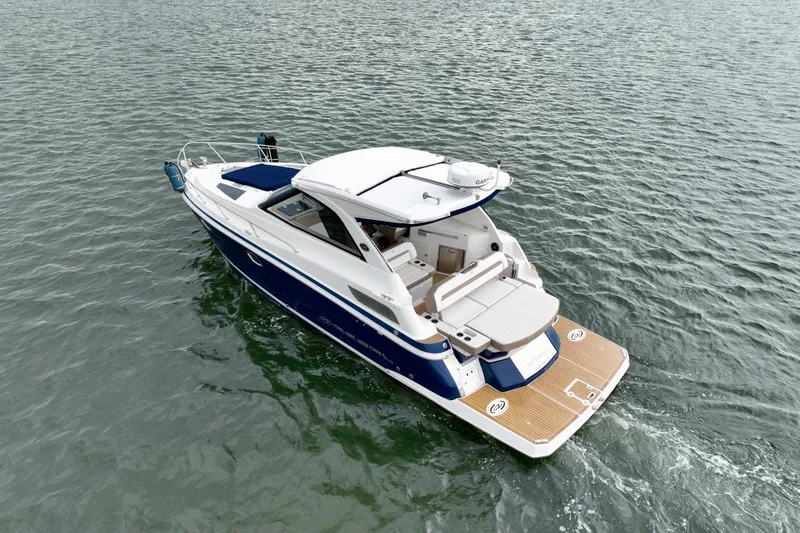 The Regal 35 Sport Coupe is one of Regal's most sought-after express cruisers, offering the perfect balance of performance, luxury, and all-weather usability. Powered by twin Volvo Penta 300-hp V8 engines with joystick docking and showing only 360 original hours, this vessel delivers strong acceleration, efficient cruising, and effortless maneuverability in tight quarters.