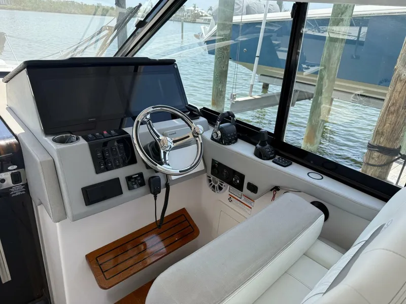 Just fwd on the stbd side is the helm station. Equipped with everything the Captain would need for safe operation.