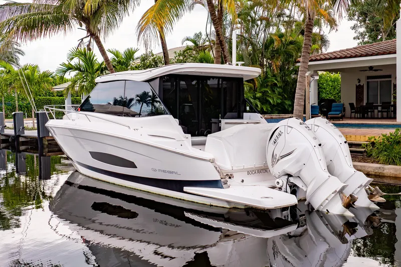 Hull # 63 of Regal Boats game changing model, the 36 XO, exemplifies everything that makes Regal Boats, and this model specifically, so special. When introduced in 2021 this boat was revolutionary. Outboards on a substantial cruiser? Fully enclosed, yacht-like salon on a 36' boat? Walkthrough doorway from salon to bow? Yacht-like bow seating? And so on. It was like Mercury's 600 V12 motor introduction, could so much new technology really work? Simple answer? Heck yeah! Lightly used, professionally maintained, she's ready for a new home. Joy-stick, bow-thruster, diesel generator, dual 8616xsv screens, autopilot, grill, Reverso engine flush, super high-speed internet, full covers, etc., etc. The 36 XO is the total package, providing space for any activity. Soak up some sun in oversized bow seating, get cozy below in the California Queen and spacious settee, or pull into port and get ready for a night on the town after freshening in the elegant walk-in shower. From multi-position seating to additional legroom in the aft, there's plenty of space to spend an exciting weekend away with family and friends.