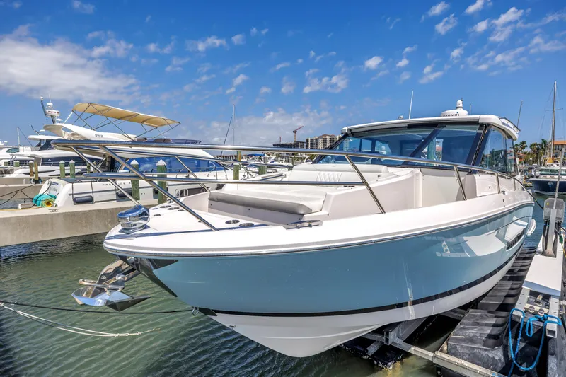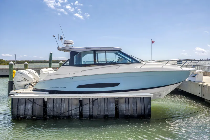 Welcome aboard this impeccably maintained 2022 Regal 36 XO! This vessel is designed to cater to every need on the water, seamlessly blending the features of a coup and a bow rider. The fully convertible salon area allows you to enjoy an open-air experience or create a cozy, quiet cabin by closing the bow window, sunroof, and back door.