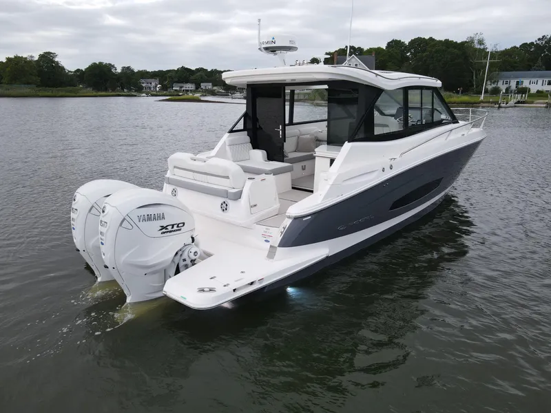The 36 XO is extraordinary in every sense of the word. From the multi-position bow seating, to the immense space in the aft thanks to the two outboard engines, you will have plenty of room for you and your guests for a weekend away on the water. Venture down into the cabin, which boasts a California Queen and a spacious settee, the 36 XO will give you everything you need and more.