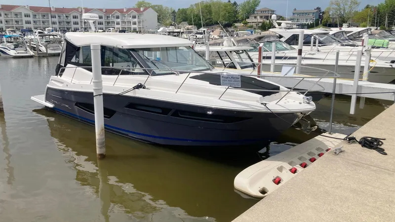 The 2025 Regal 38 Grande Coupe is a luxurious, stylish cruiser designed for comfort and performance on the water. Featuring sleek lines and a spacious layout, it offers a contemporary cabin with modern amenities, including a fully equipped galley and comfortable sleeping quarters. With powerful twin engines, advanced navigation systems, and innovative features like a retractable hardtop, the 38 Grande Coupe ensures an exceptional boating experience for both leisure and adventure. Ideal for entertaining, it also boasts ample outdoor space with a versatile cockpit and generous seating, making it perfect for family outings or social gatherings.