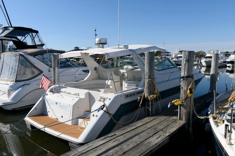 A 40' Diesel express cruiser at this price is definitely one to look at. Nice condition inside and out on this Regal 402 Commodore. The seller has added wood flooring in the cabin and the boat has a great 2 cabin layout that makes weekends at the marina or a distant location a reality.