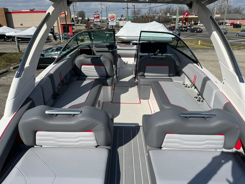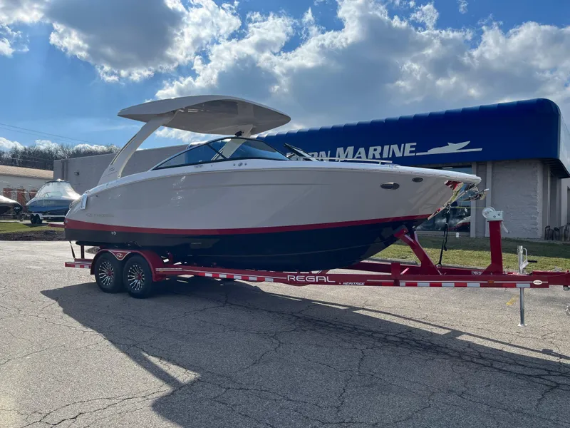 The 2024 Regal LS9 is a luxury bowrider designed for an exceptional boating experience, blending performance, comfort, and cutting-edge technology. At 29 feet in length, it offers a spacious and stylish ride, perfect for family outings or gatherings with friends. Key features include an innovative underwater PowerPlatform for easy access to and from the water, dual 12-inch glass cockpit displays for seamless control, and a choice of powerful Volvo engines, such as the 430 hp V8 for outstanding performance.