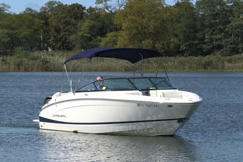 The LX4 offers Regal's signature luxury touches, sporty handling, and a spacious layout for entertaining. With its upgraded Garmin electronics, stainless steel package, and watersports tow pylon, this boat is equally at home cruising in comfort or pulling skiers and wakeboarders.