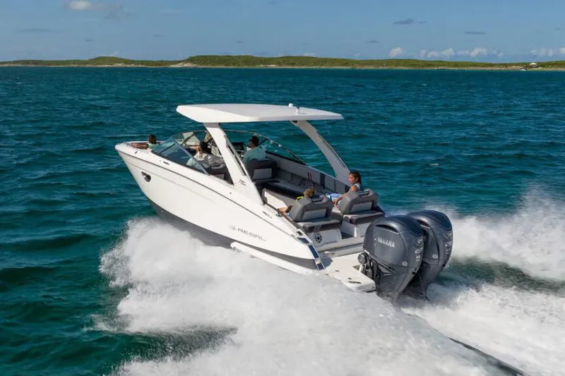 Introducing the stunning 2026 Regal LX9 Bowrider, a remarkable vessel designed for both performance and luxury. With an impressive overall length of 29 feet, this new boat features a sleek modified vee hull crafted from durable fiberglass, ensuring a smooth and stable ride on the water. Powered by twin Yamaha F250 outboard engines, each delivering 250 horsepower, the LX9 promises exhilarating speed and agility. The stainless steel propellers enhance efficiency, making every outing a thrilling experience. Equipped with an electric windlass, this boat combines convenience with modern technology, making anchoring effortless. The thoughtful accommodation includes a well-appointed head, ensuring comfort during your adventures. Whether you're cruising with friends or enjoying a day on the water, the Regal LX9 is designed to impress with its stylish design and robust features, making it the perfect choice for those who seek both excitement and elegance on the water.