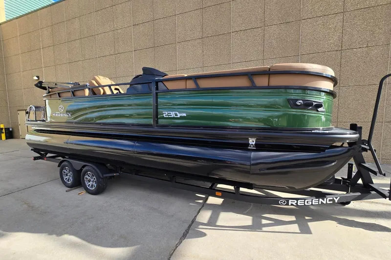 Step aboard the 2026 REGENCY® 230 DL-a pontoon designed for those who expect more from every moment on the water. Luxury and performance unite in a bold, refined design where every detail elevates your experience. Relax on plush wraparound lounges with lockable storage, or take command from the raised helm in an adjustable captain's chair. The REGENCY® omni2™ 12" touchscreen puts control at your fingertips, paired with Bluetooth® connectivity and premium Wet Sounds® audio for an immersive ride. Create the perfect atmosphere with customizable RGB lighting that syncs to your playlist. Stay powered with USB ports at every seat and wireless charging at the helm. Premium woven vinyl flooring and STOW MORE™ quiet-close hinges add convenience and sophistication. Underneath, triple 26" multichambered logs and power-assisted hydraulic steering deliver smooth, confident handling. A removable ski tow pylon, extended swim platform, new telescoping wide step stainless steel ladder, and LED navigation lights ensure you're ready for watersports or sunset cruises. The REGENCY® 230 DL isn't just a pontoon-it's a new standard in style and innovation. Make every outing unforgettable.