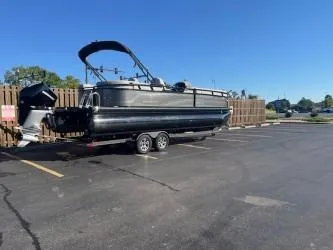 Time to play with all the friends an family! Package includes a BRAND NEW 2025 trailer, Ski Tow Pylon, Power bimini top and a fresh service on the 250 Verado! Lake ready luxury tritoon!