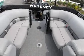 The REGENCY® 250 LE3 Sport pontoon provides a crew of 14 everything needed to experience adventure in luxury and comfort.