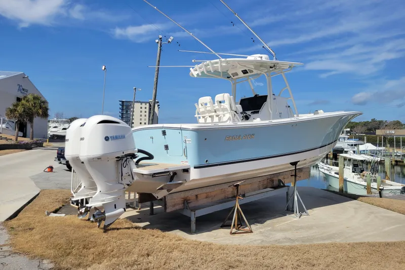 Introducing the 2018 Regulator 28 Forward Seating, a remarkable saltwater fishing vessel that combines performance and comfort. With an overall length of 30 feet, this boat is designed for serious anglers who appreciate quality and craftsmanship. The deep vee hull, constructed from durable fiberglass, ensures a smooth ride even in challenging waters. Powered by a single Yamaha F300NCA outboard engine, this boat delivers an impressive 300 horsepower, making it perfect for both leisurely cruises and thrilling fishing expeditions. With only 125 hours of use, this vessel is in excellent condition, ready for new adventures. The thoughtful design includes ample seating and features that enhance the fishing experience. Whether you're casting lines or enjoying a day on the water, the Regulator 28 Forward Seating promises reliability and enjoyment for all your aquatic pursuits.