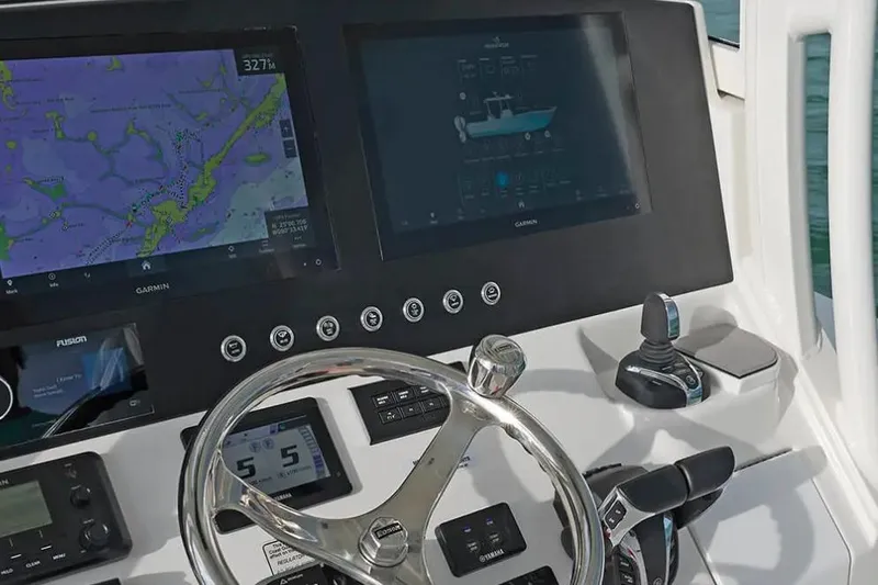 - Offshore Command Center: Garmin® Multi-Function Displays with Digital Switching and Monitoring, Plus Proprietary Regulator MyHelm™ Interface for Seamless and Intuitive Connectivity of Key Functions via Touchscreen