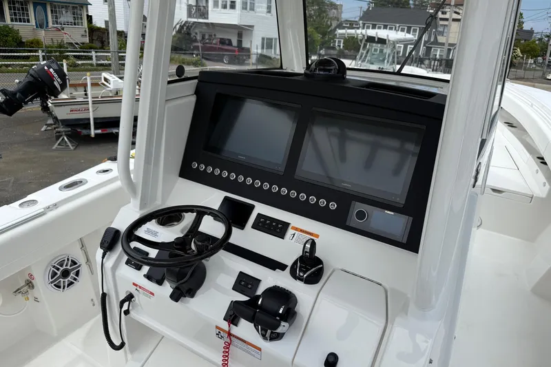 - Factory-Installed Garmin® Offshore Package: Two 16” GPSMAP® 8616XSV Multi-Touch Wide screen Chartplotter/Sonar Displays, VHF 215 AIS Radio with Dual 8’ Antennas, GMR™ 424 xHD 4kW Open-Array Radar, Airmar® B275LHW with Wide Beam 1kW CHIRP Transducer, and Yamaha EX Autopilot, Plus Black Flushmount Electronics Face and Remote Mic