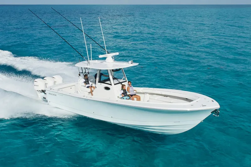 A true center console, with a design that maximizes space to rival its 39-foot competitors. Now available with Triple Yamaha 350s or Twin 450s, new fishing and lifestyle features, deluxe berth/cabin, standard Seakeeper Ride, and more rod holders than ever before.