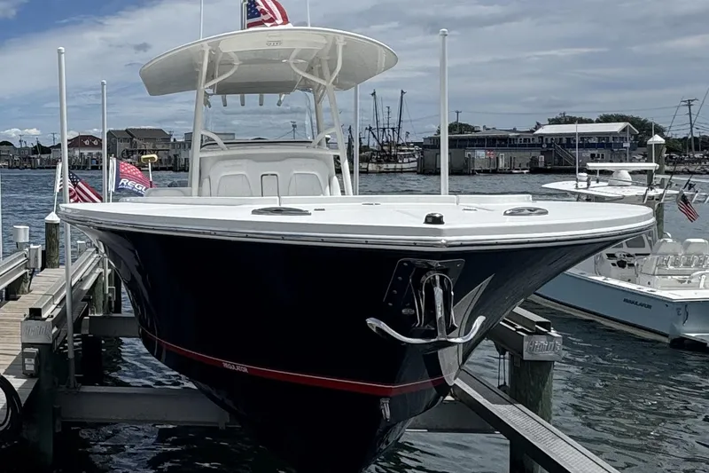Now available at Ocean House Marina, this mint condition, one-owner Regulator 34SS is powered by triple Yamaha F300 Offshore Series outboards with only 294 hours. Originally purchased and commissioned in 2019, this boat has been maintained right here at Ocean House Marina since new.
