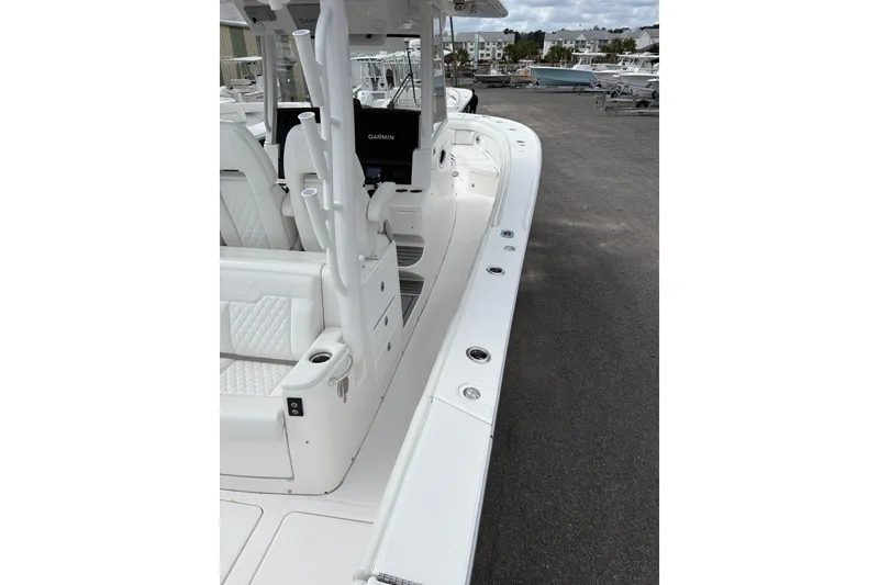 Top it off with premium Garmin electronics, JL Audio sound, factory-installed Dometic D3G Gyro stabilization, Seakeeper Ride, and you've got a head-turner ready for serious offshore action or stylish sandbar cruises.