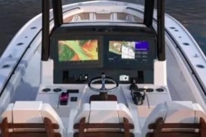 - Offshore Command Center: Garmin® Multi-Function Displays with Digital Switching and Monitoring, Proprietary Regulator MyHelm™ Interface for Seamless and Intuitive Connectivity of Key Functions via Touchscreen, and Dedicated MyHelm™ Key Fob for Main Power and Lighting Circuits