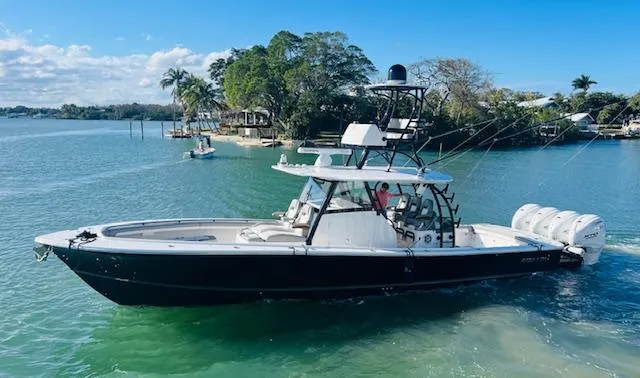 Yamaha Helm Master 41 - Quad Yamaha F450 - Helm Master Entire Hull Colored Custom Color  41 Quad F450 Eng Bracket - Hull Colored White Powder Coat Pkg 41 Fiberglass Hardtop T-Top Color Match Hull - Custom Color T-Top Spray Curtain Enclosure Gem 22ft Carbon Fiber Outriggers Sureshade Auto Rear - Black Forward Sun Shade - Black T-Top Garmin Navigation Screen Opt 37-41 41 Dual Station Tower Carbon Fiber Edson Wheel - Tower Dove Upolstry Quilt Pkg Helm Seat Teak Ladderback 4x Dlx Tackle Center W/ Mezz Seat - Grill-Sink Upg Std Garmin Offshore Pkg, Yamaha Autopilot, Gmr 1224 Xhd2 12kw Array - 14 Siriusxm Gxm 54 Weather Marine Receiver Inductive Cell Phone Charger Flir Thermal Camera - Std 31-41 Freshwater Engine Flush - Quad Eng 41 Refrigerated Transom Fishbox Thru Stem Bow Roller Multi-Colored Underwater Led Lights Cup Holder Rod Holders In Lieu Of Std  Additional Cup Rod Holder Pkg Transom Rod Holders - 15 Deg (6x/37/41)  Under Gunwale Rod Storage - Option Electric Reel Plugs - Option Phender Pro Fender Cleats Clear Transom Livewell Lid Gaff Holder Hose Coil Rack Sidescan Transducer Option Carbon Fiber Edson Wheel W/ Pwr Knob - Helm Std 41 Marine Stereo Kit - 10 Speakers, 2 Subs &Amps Std Synthetic Teak Bracket Mat Cover 41 Standard Seakeeper 5 Gyro System 4x Dlx Tackle Ctr - Black 41 Helm Cover - Black 450 Engine Cover Black