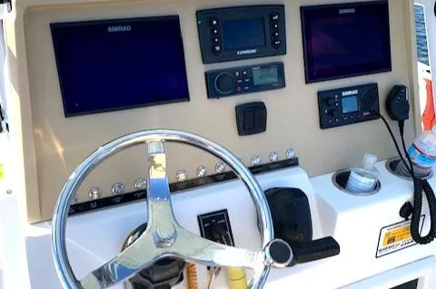 Advanced Simrad electronics and a premium Fusion sound system for the ultimate boating experience.