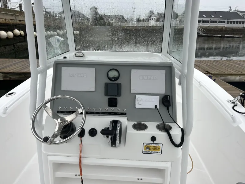 A Great Find and Tremendous Value! If you are searching for a solid-built center console with an excellent finish and ride, this 2021 240 RX Release has found you! She is clean and well-maintained. She sports a beautiful Mercury 300 Seaapro with a Simrad electronics package, including dual monitors. Complete with a fiberglass hardtop, bow seating with a forward-facing backrest, fold-flat comfortable stern seating, Fusion stereo, trim tabs, and on-deck engine flush. Trailer included!