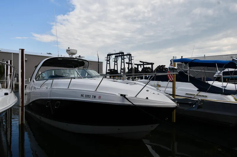 Freshwater / Great Lakes boat since new this vessel features Twin MerCruiser 350-MAG 260-hp Gas Engine's with Bravo III Sterndrives and only 246 original hours. Notable features include but are not limited to the following: Air-Conditioning & Heat, Head (Vacuflush) w/Vanity/Sink/Shower, Cockpit Wet Bar w/Sink/Refrigerator/Blender/Electric BBQ-Grill, Windlass Anchor w/Forward Pedal-Controls, Raymarine (Color) GPS w/Chartplotter w/Radar, Premium Sound System w/CD-Player/iPod/MP3-Connection, Canvas Enclosure w/Cockpit Mooring-Cover, Cockpit Table, Integrated Cooler Storage, Power Engine Hatch Lift, and MUCH more!