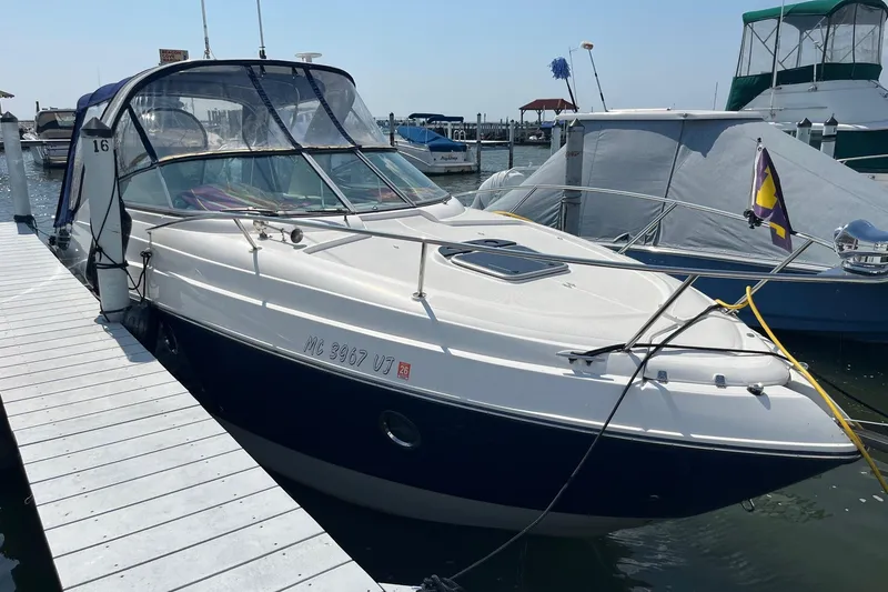 This freshwater vessel features a Mercruiser 8.2 Liter MAG (380 hp), with only 120 hrs. Bow Thruster, A/C-Heat, Windlass, Simrad GPS/Chartplotter, Raymarine VHF, Premium Stereo system with Bluetooth audio, Camper Top with screens, Bow sun pads, and much more!