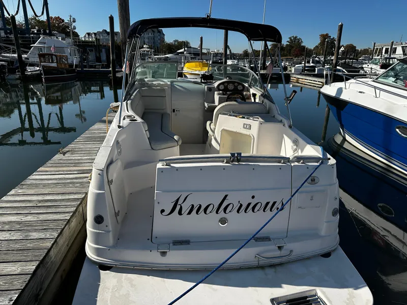 The Rinker 250 Fiesta Vee is a pocket-sized cruiser that can take you for a day or weekend journey. The boat has a great layout on deck and down below. It is a family sports boat, accommodating sleeping for 4 with a private double aft and the forward dining that converts to a large berth. Cabin includes marine head. A functioning galley with an electric alcohol stovetop, refrigerator, sink and microwave.