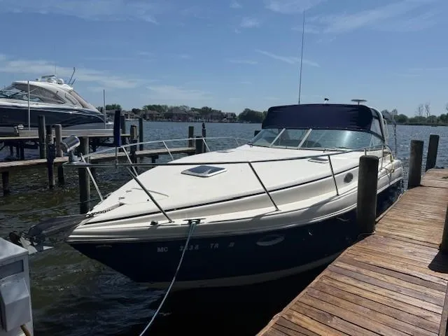 Introducing the 2003 Rinker Fiesta Vee 342, a stunning cruiser that combines elegance and performance. With an overall length of 37 feet, this vessel features a robust fiberglass hull designed in a deep vee shape, ensuring stability and smooth navigation on the water. This Rinker has been in freshwater since day one, the current owner of ten years is the 2nd owner of the vessel. Powered by twin Mercury 350 Mag MPI engines, each delivering an impressive 300 horsepower, this boat is equipped for thrilling adventures with a total of 611 and 583 hours of operation, respectively. The interior offers comfortable accommodations with two berths and a well-appointed head with full shower, making it perfect for extended trips. The cabin also features air conditioning, heat, refrigerator, microwave, cook top, and flat screen tv. The cockpit is spacious and includes a wet bar with built in blender, Ice maker and refrigerator. Whether you're cruising with family or entertaining friends, the Rinker Fiesta Vee 342 promises an unforgettable experience on the water, blending style, comfort, and power seamlessly.