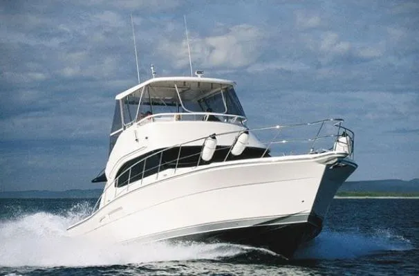 The Riviera 47 Flybridge Convertible is A marriage of sport fisher performance and the confort of a motor yacht . The new 47's hull offers a more aggressive entry to slice through seas and a larger reverse chine to knock aside spray and maintain stability in a wide range of conditions.