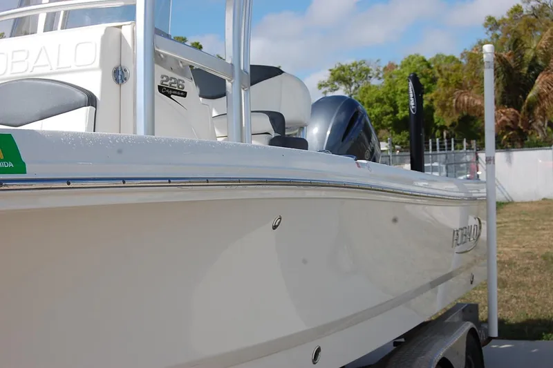 Introducing the 2019 Robalo 226 Cayman, a stunning example of a Bay Boat that perfectly blends performance and versatility. With an overall length of 22.5 feet, this vessel features a robust fiberglass hull designed in a modified Vee shape, ensuring a smooth ride across various water conditions. Powered by a reliable 200 hp Yamaha F200 outboard engine, this boat boasts 488 hours of operation, showcasing its dependable performance. The stainless steel 3-blade propeller enhances efficiency and maneuverability, making it an excellent choice for both fishing and leisure activities. This Robalo 226 Cayman is equipped with essential features that cater to a comfortable boating experience. Its thoughtful design and durable construction make it an ideal companion for your adventures on the water. Experience the thrill of boating with this exceptional vessel that promises both excitement and reliability.