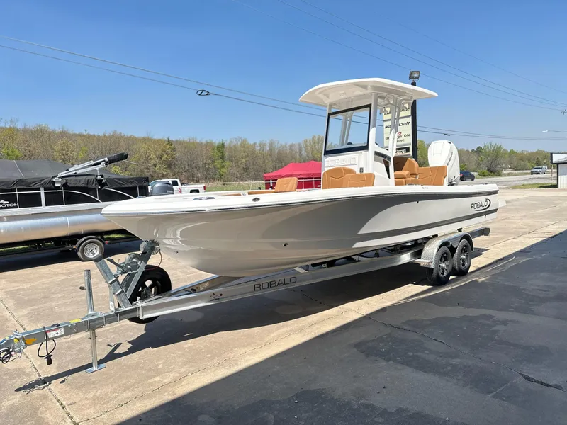NEW 2025 ROBALO 246 CAYMAN POWERED BY MERCURY VERADO V10 350HP / ATLAS HYDRAULIC JACK PLATE / LENCO TRIM TABS/ SIMRAD NNS12 EVO3S / UPGRADED JL AUDIO SYSTEM / REMOVABLE BOW CUSHIONS AND BACKRESTS / REMOVABLE TABLE / EXTENDED AFT PLATFORM STARBOARD & PORT / SS ROD HOLDERS / HEAD CMPARTMENT / TWO BATTERIES W/ CHARGER / TANDEM AXLE ALUMINUM TRAILER WITH SPARE. FOR MORE INFORMATION CONTACT CLINT IN MCALESTER @ 918-423-8848